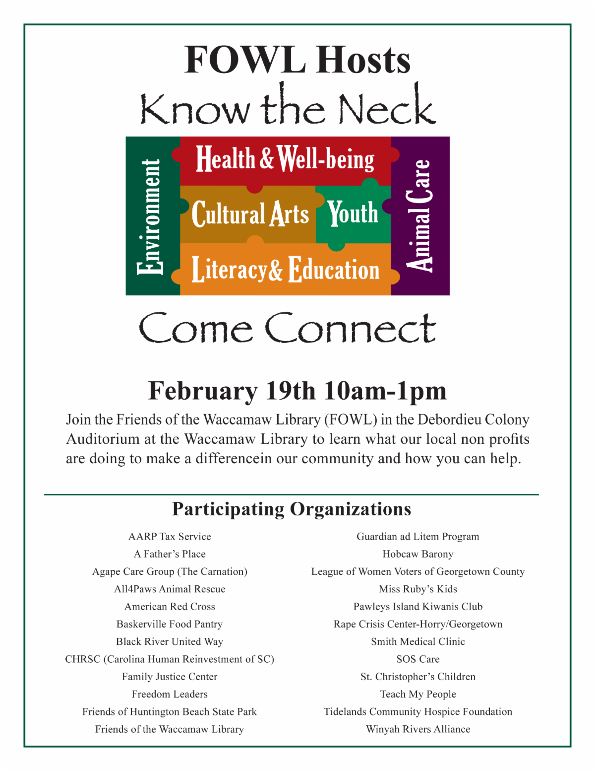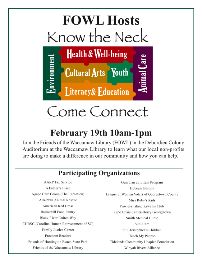Georgetown County Library adult programs will be cancelled for this weekend:
